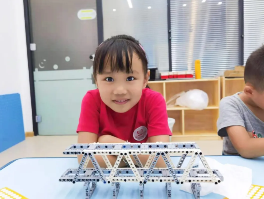 課程過(guò)程中,老師還會(huì)觸類旁通,針對(duì)動(dòng)物、交通、建筑等不同搭建主題,教授孩子對(duì)應(yīng)的英語(yǔ)單詞,還有它們引申出的中文詩(shī)詞成語(yǔ),像頂天立地的機(jī)器人、堅(jiān)不可摧的大橋,輕松積累詞匯量。