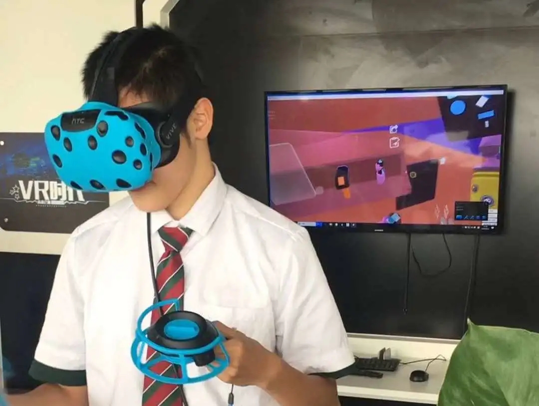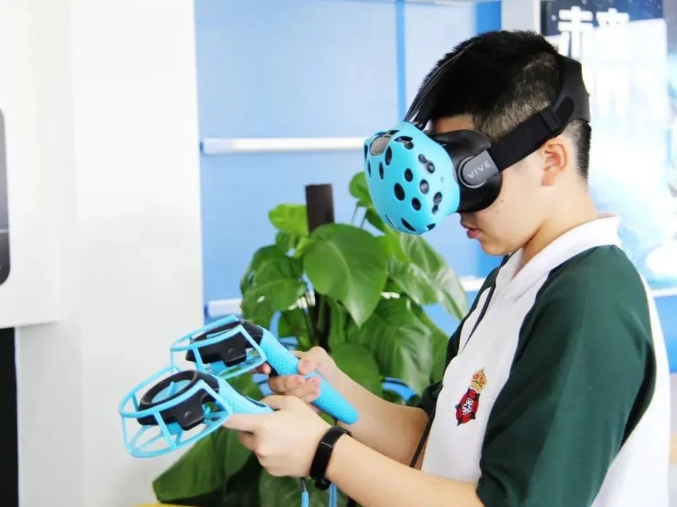 ▲南京金地未來學(xué)校特色人工智能實踐課與VR課