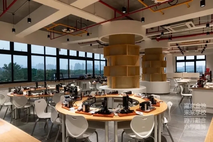 ▲南京金地未來學(xué)校DT教室、機器人教室及3D打印機